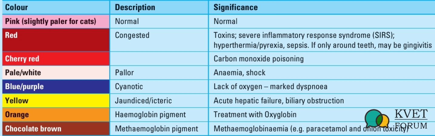 Normal mucous membrane colour in a dog is pale pink. "abnormal" in this context refers to any deviation from a . Gum color chart for dogs and cats . Mucus membranes, like the 'whites' of. Your pet's mucous membrane colour can be an indication of cardiovascular and respiratory health and your vet may ask you to check this.